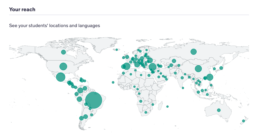 Hoje, mais de 70 mil alunos em 119 países já fazem parte dessa jornada. Nossa missão é oferecer soluções acessíveis e eficazes para escolas, empresas e instituições que acreditam no poder dos idiomas como ferramenta de crescimento e impacto.